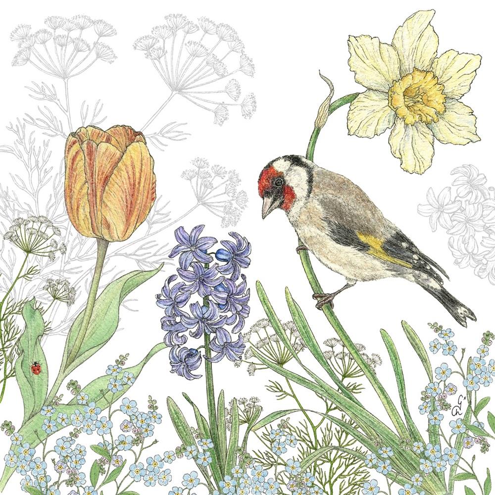 PPD Pack of 20 Paper Napkins / Serviettes - Finch in Spring - 33cm x 33cm - 3 Ply